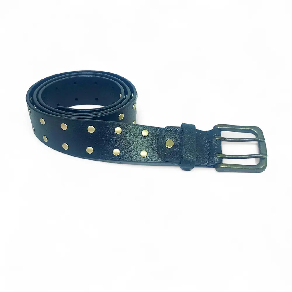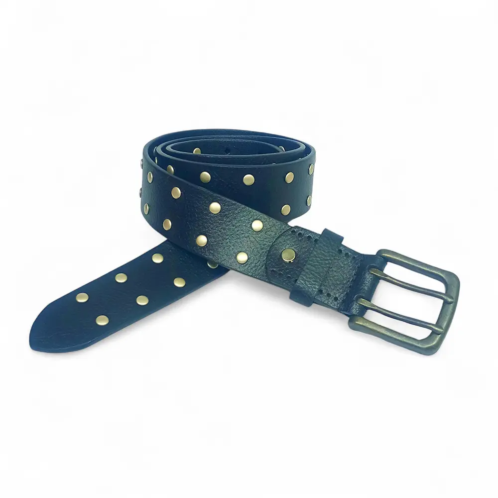 Premium Full Grain Leather Studded Belt for Men – Black Waist Belt with Brass Buckle LB-310